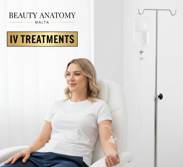 Beauty/Glow Drip: A blend of antioxidants (Glutathione) and vitamins that support collagen, hydrate skin, and enhance complexion.